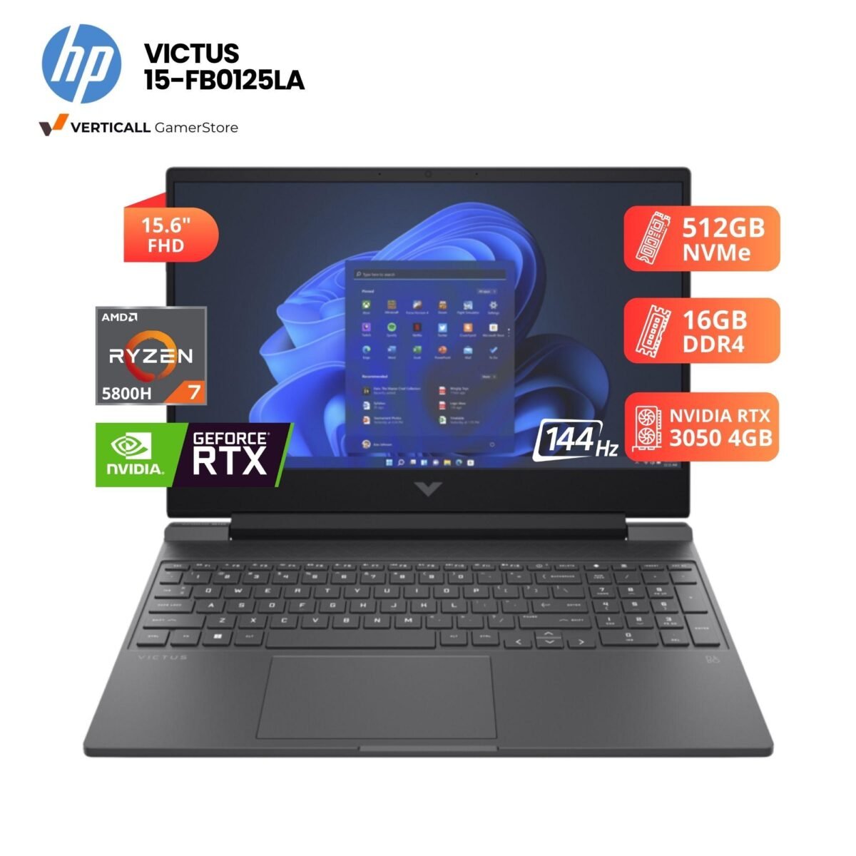 LAPTOP HP VICTUS 15-FB0125LA RYZEN 7-5800H, RTX 3050 4GB, 16GB DDR4, 512GB SSD, 15.6″ FHD 144HZ